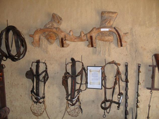 Se expone un yugo con sus mullidas, los brinones y unos esquilines y esquilones.