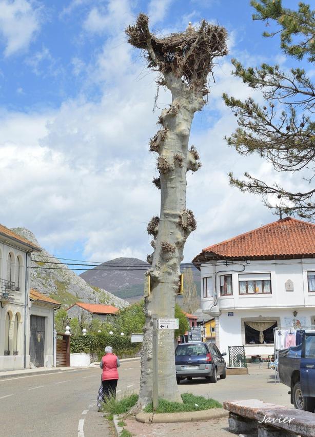 En lo alto la vecina cigüeña,