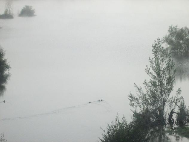 los patos navegando en un mar de niebla,