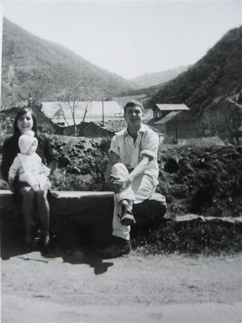 Y muy formal..... ha un metro de separación, así era antigua mente solo cuando se estaba en el pueblo de día. Foto tomada hace 44. Años Rosita con su hermano el pequeño