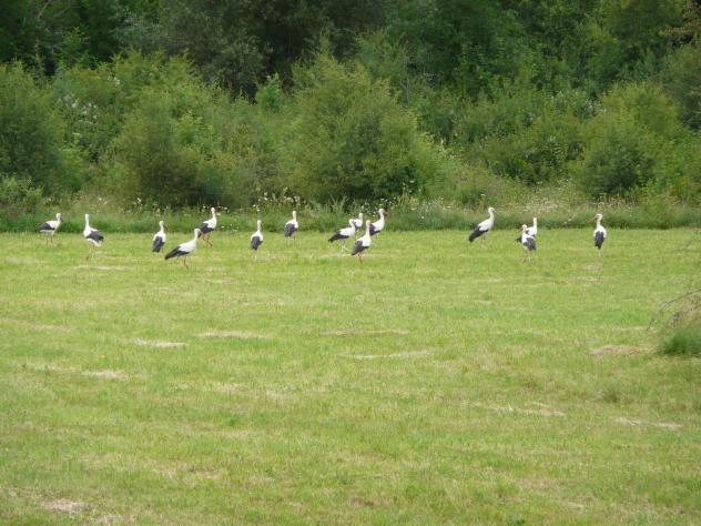 Las cigüeñas en el prado,
