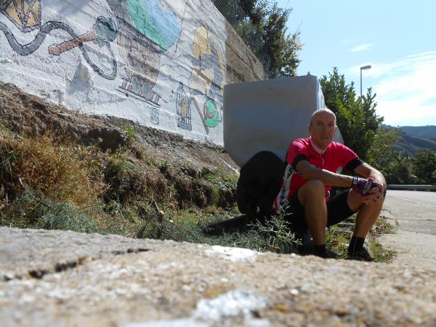 Posando al lado del Mural "Soy Minero". Pintado al principio de la