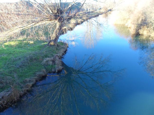 Zalce reflejándose en el río,