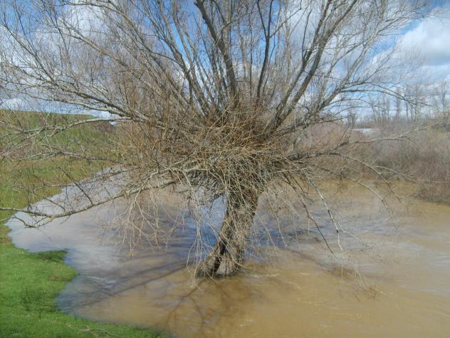 la riada que tuvimos el viernes 29 y el sábado 30 de marzo cubrió el zalce casi hasta la mitad de su tronco.