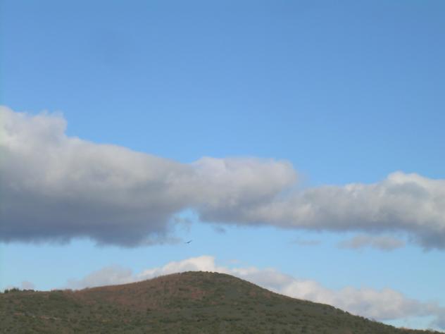 Montañas, aguila, nubes y cielo,