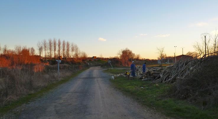 Cortando leña,