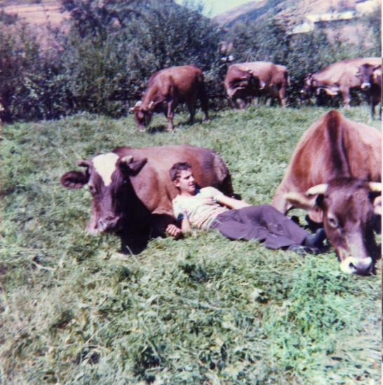En la Veiga con las vacas (foto antigua),