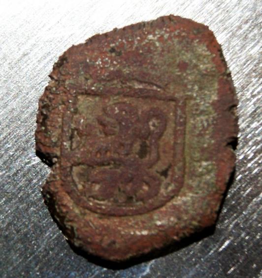 Te dije Carlos II, pero tambien puede ser Felipe III y Felipe IV, hay una de Felipe IV que tiene también los dos rabitos, como si fueran un lazo encima del escudo.... y esa es más antigua 1621.