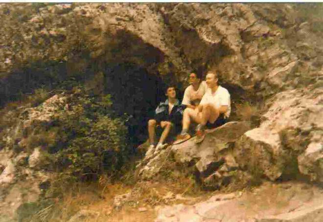 Amigos delante Cueva Las Brujas. Verano 1990,