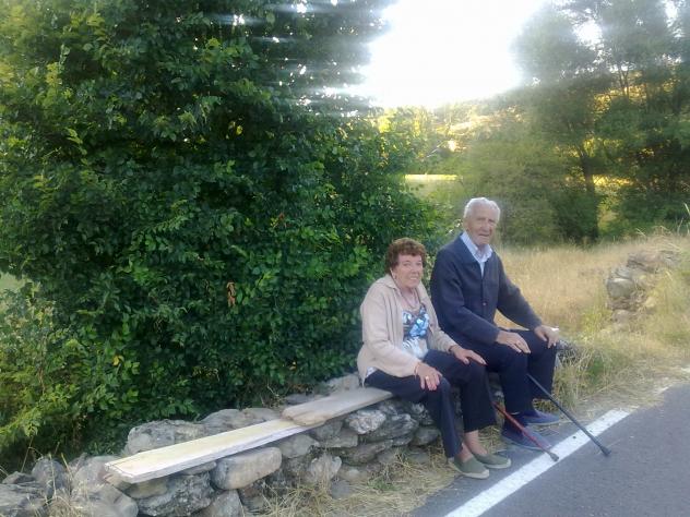 con 94 años sentado junto a su mujer Rosario, de ochenta y muchos, al amparo de la
