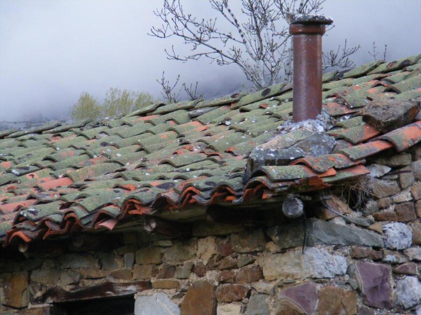 Las tejas verdes por la humedad,