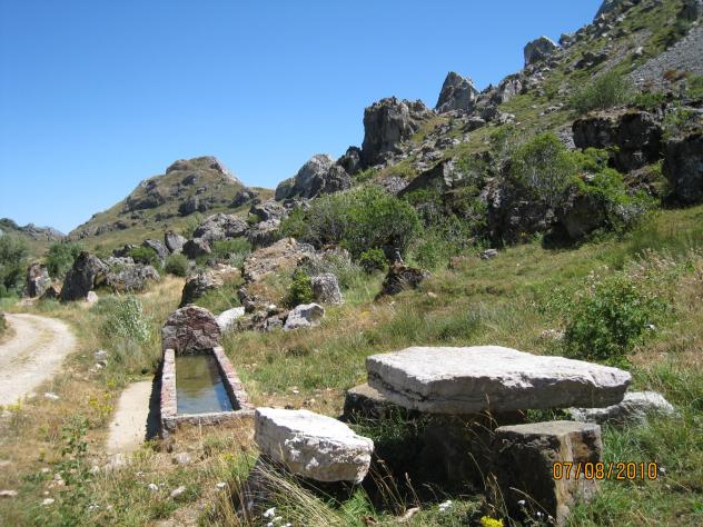Abrevadero y mesa megalítica,