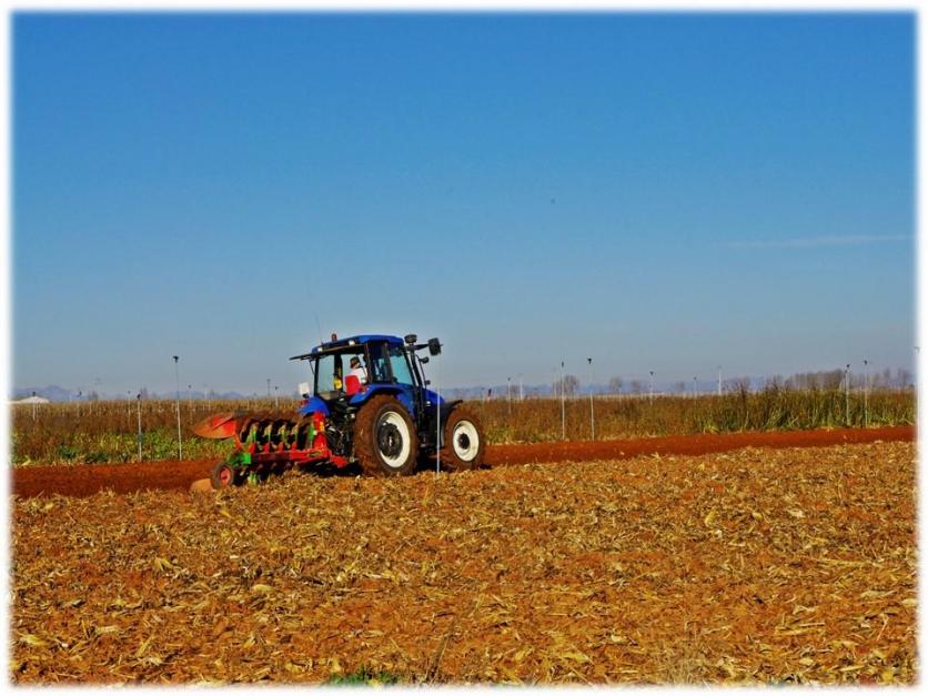 arando el campo,