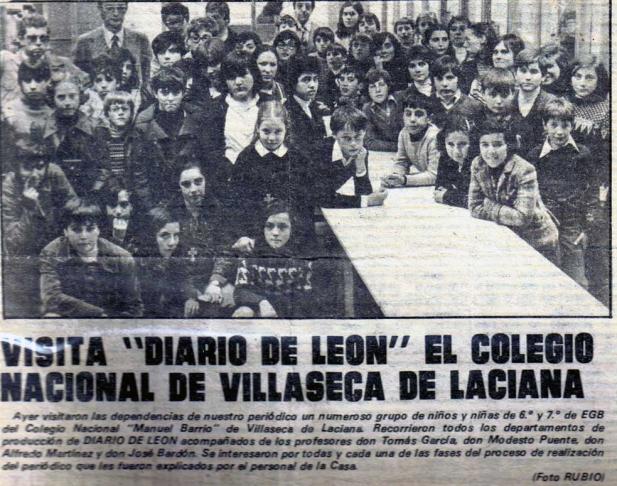 Este recorte del Diario de León lo conservo como un tesoro. Cuando estaba en 6º de EGB en las escuelas del campo fuimos de excursión a visitar el periódico. Se podría decir que estamos todos los de mi quinta exceptuando obviamente a los que no pudiesen ir.