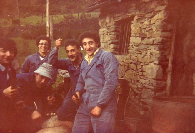 Si Tini, parecen asesinos, pero a todos nos gusta el jamon jajaja, a que si, bueno hay que vivir besines jajajaj ¡pobre gochin ¡jajaja La puso estos dias un tal cuaitelon, puso mas Los de la foto somos Joaqui el hermano de Melina Chuchi y Josito Jovellar, el Malagueño y yo al fondo.