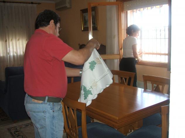 Mi hermano partiendo jamon, lo que disfrutaba el hombre.
