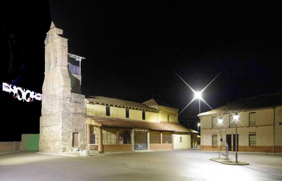la plaza del pueblo de noche en Navidad,