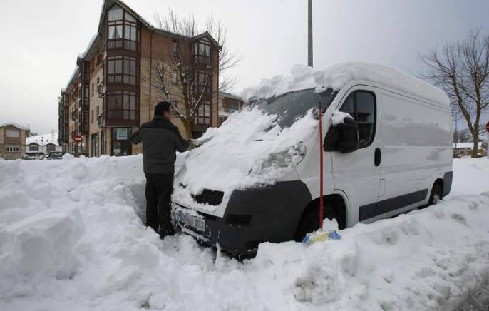 quitando la nieve del cristal,