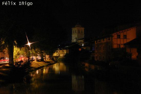 La noche encierra Aguilar, pero la villa se resiste a quedarse a oscuras y queda iluminada por farolas que nos muestran las calles y focos que realzan la belleza de los monumentos. El río, en él quedan reflejadas estas luces que, junto con la imponente torre de la colegiata, añaden un encanto especial que solo posee este maravilloso pueblo.