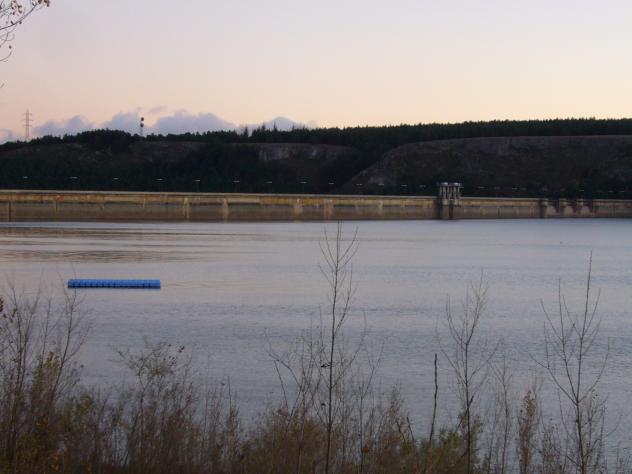 Es la presa del pantano, por ella se puede circular, incluso en coche. Se ve que hay reserva hidráulica, que nuestro Pisuerga es muy capaz de esto y mucho más.
