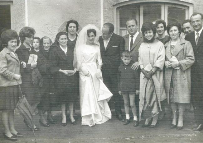 Raúl me acuerdo de esta foto y de esa boda, Marieta tu tía, tu madre Angelines, la abuela, Vitorina, tía Espe, por cierto me he enterado que falleció, lo siento, te mando muchos besos para tu madre, dile que soy la hija de Isabel de la ferretería que vivíamos al lado del casino, y hemos compartido muchas cosas, a tu padre también le recuerdo, Agustín, cuando vino a Alar a instalar las líneas telefónicas y ahí se conocieron.