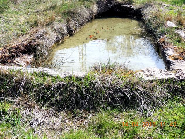 Peces de colores en una fuente o charco,