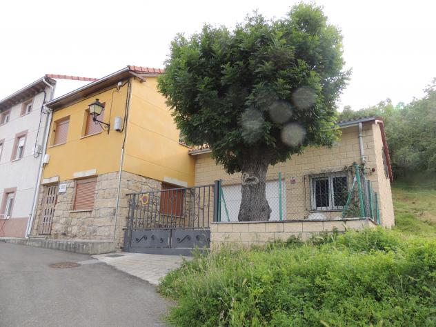 Las casas de entrada y un añoso Fraxinus excelsior,