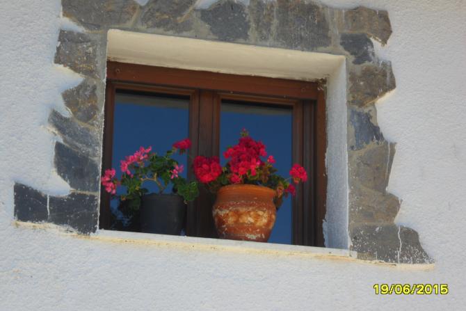 dos tiestos en la ventana,