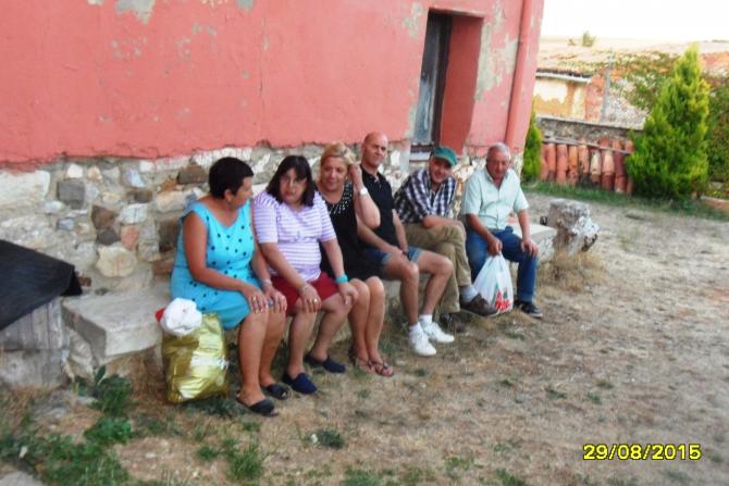 Pili, Bea, Mari, Pepin, Mariano y tino en el banco,