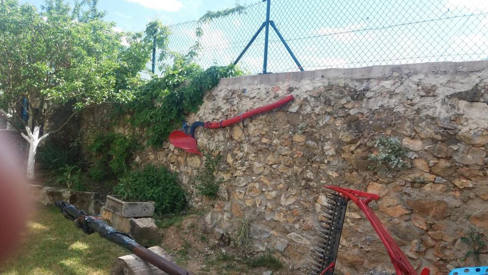 Arado colgado en la pared,