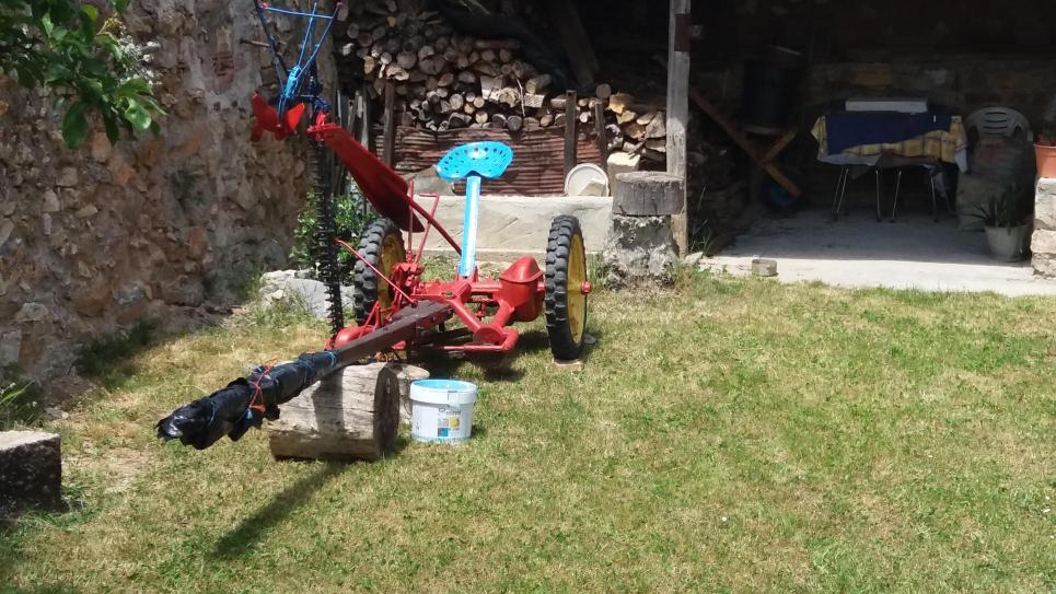 Vista delantera de la máquina de segar,