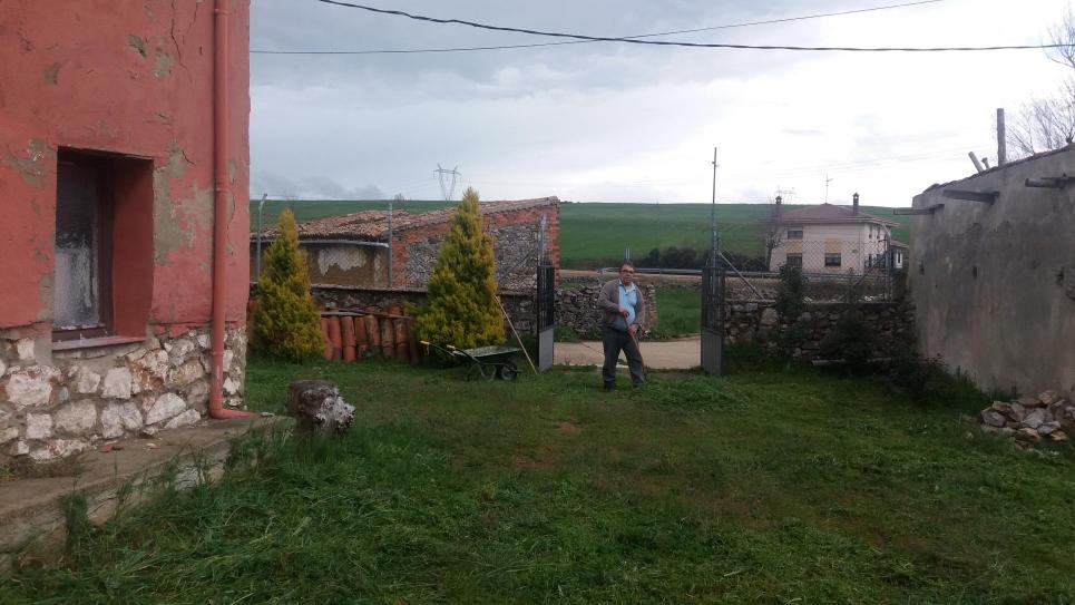 Recogiendo la hierba con la horca,
