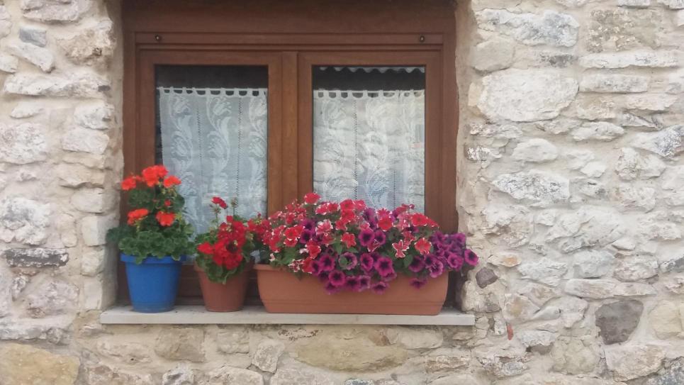 Flores delante de la ventana,