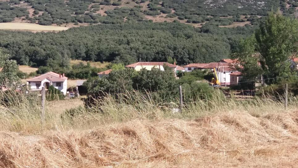 la grúa junto a las casas,