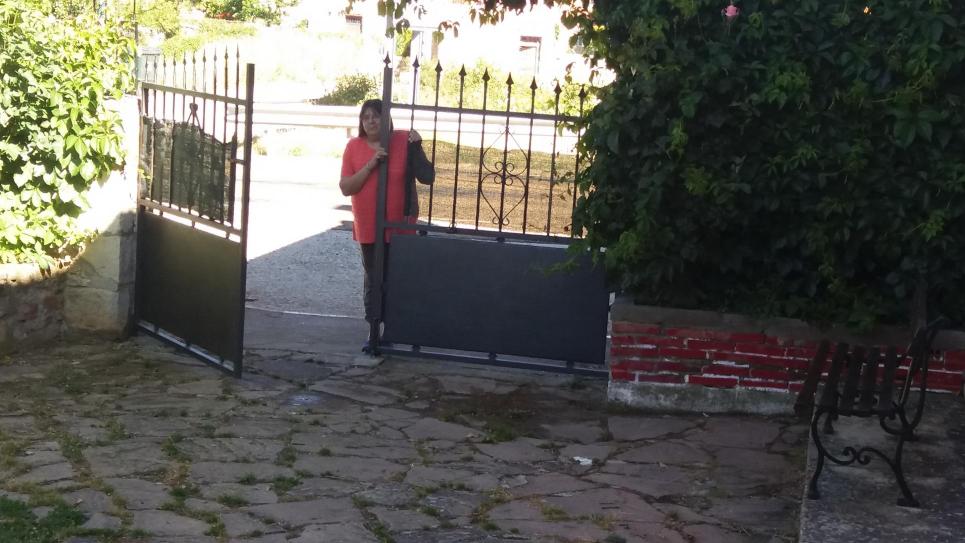 frente a la puerta,