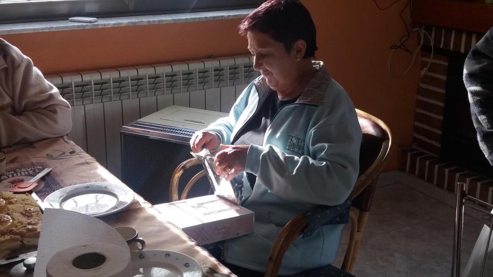 Abriendo el regalo,