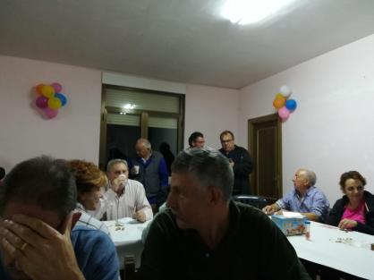 Tomando chocolate y bizcochos,