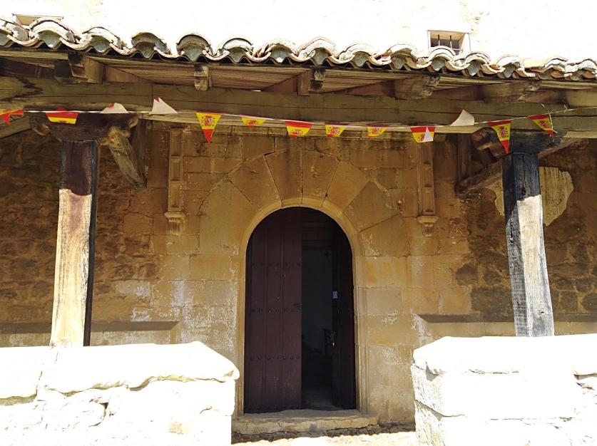 Los banderines en la entrada al templo,