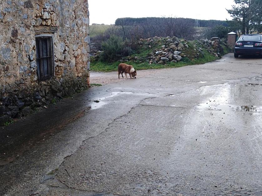 El perro olisquea,