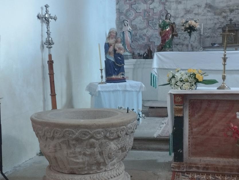 Pila bautismal y virgen del pilar,