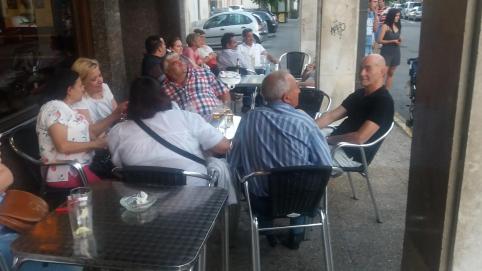de Columbia. en la foto de julio se puede ver de izquierda a derecha a manolin en primer termino, luego junto a la banqueta esta tino, le sigue arturo, satur, jose y pili con el sombrero en la mano, despues beatriz, justo frente a la mesa pilar, de mpies encarna y naquilina, y de espaldas genoveva.