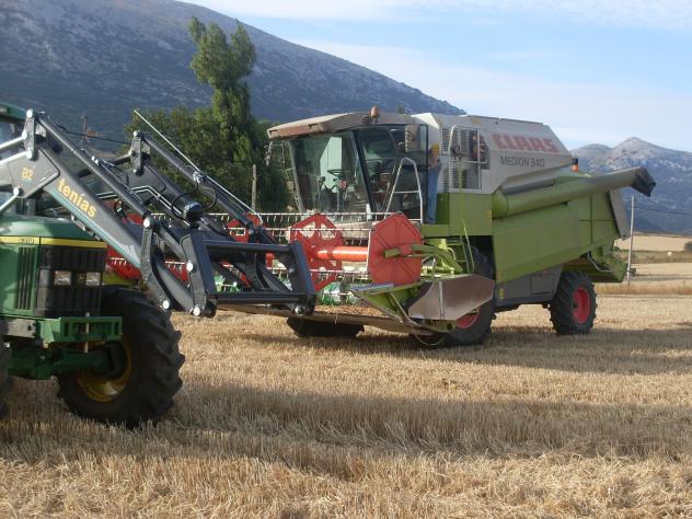 tractor y cosechadora en reposo,