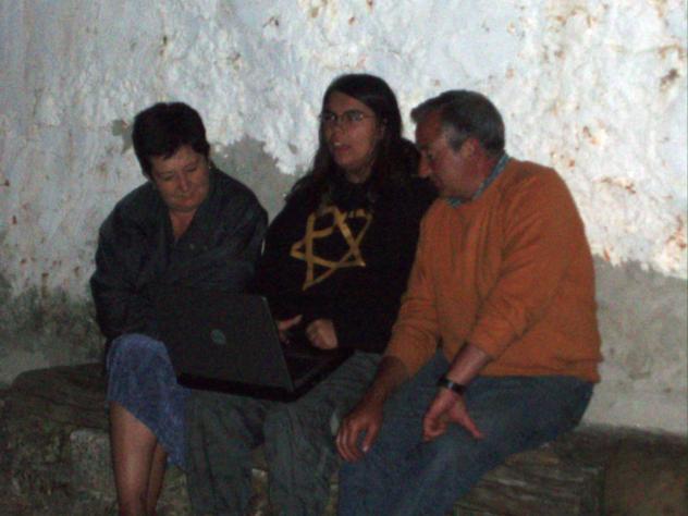 Pili, Bea y Tino en el banco,