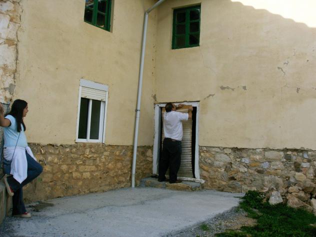 quitando la persiana para poder entrar,