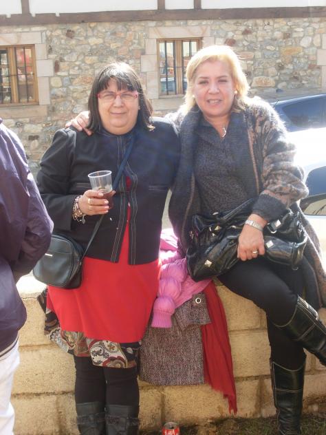 Mari y Beatriz en la pared de la escuela,