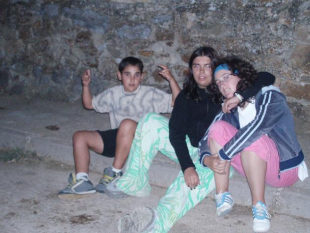 Mikel, Beatriz y Tamara en la acera,
