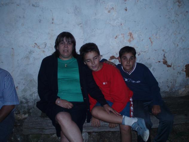 Bea, Luis dormido y Mikel en el banco,