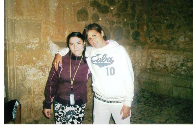 soraya y noemi en el portalillo de la iglesia,