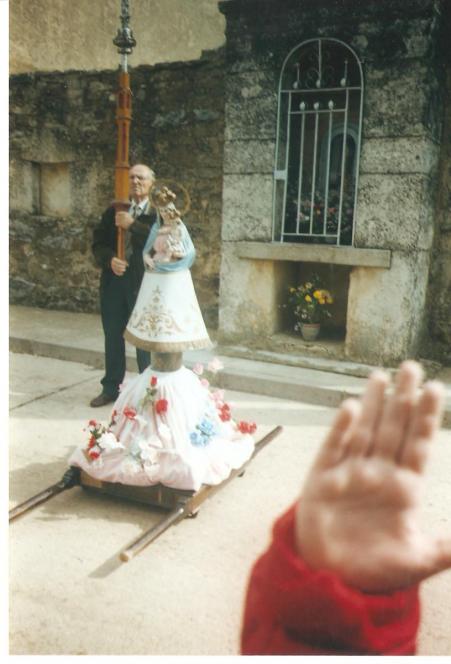 Blas con la cruz al lado de la Virgen,