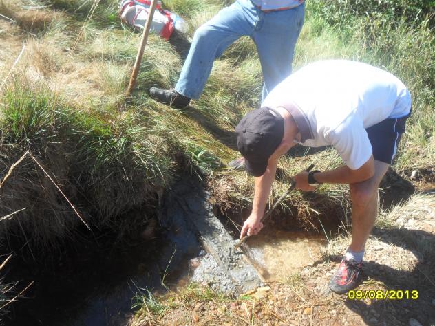 Pepín procediendo a ponerle fecha a la fuente,
